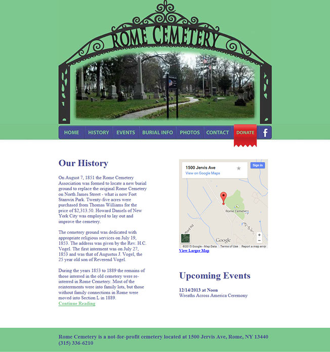 This project was to redesign the Rome Cemetery website. A searchable database of those buried in the cemetery was required.