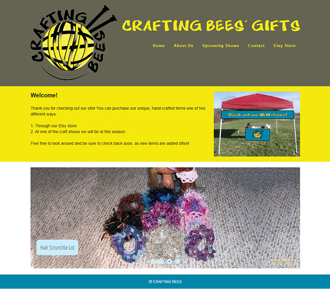 This project was to design the Crafting Bees website. It needed to utilize responsive design and adapt to being accessed from a desktop computer, tablet or mobile device.